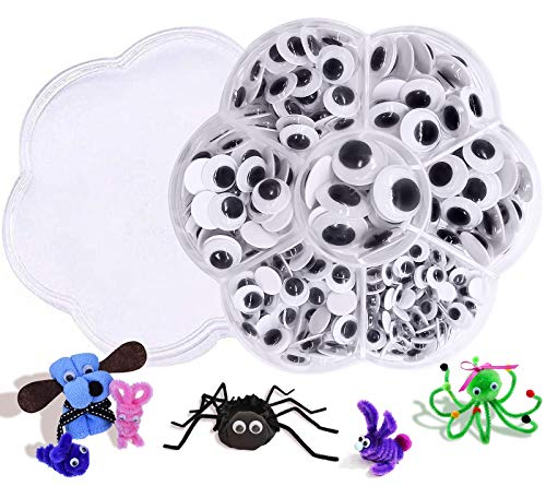 Cosa ottieni - La confezione contiene 262 pezzi di occhi finti adesivi neri (6mm-15mm), 1 scatola di plastica a forma di fiore di prugna con 7 griglie per un facile utilizzo e conservazione. Quantità sufficienti per il fai da te con le tue famiglie e amici, ecc.