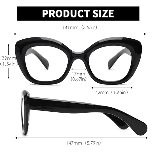 Caratteristiche del Rodotto: montature di alta qualità oversize, resistenti, cat eye, lente d'ingrandimento che blocca la luce blu, ponte a sella e cerniera in metallo.