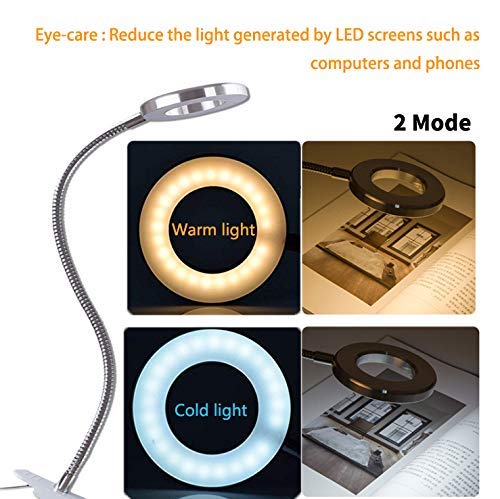 6W Led Clip on Luce Cura degli occhi Night Reading Light Lampada tavolo regolabile a 360 gradi Temperatura di colore Variabile Desk Light con morsetto USB Power Clamp Lights per libro Bedside Piano Headboard (Nero)nessun adattator