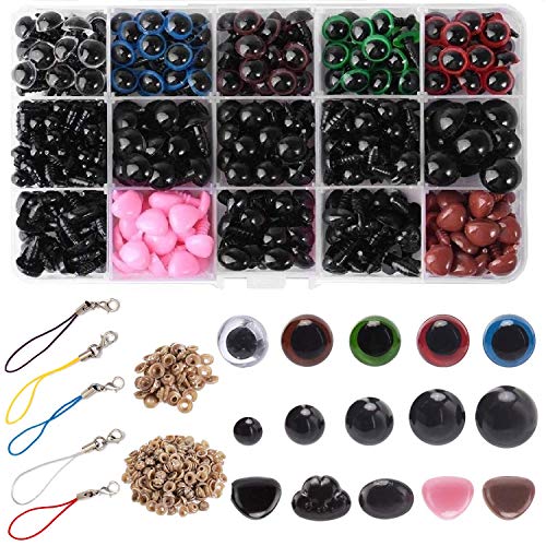 Occhi di Sicurezza per Amigurumi 615 Pezzi Occhi 6-14mm Plastica Occhietti e Nasi per Bambole per Orsacchiotti e Occhi di Giocattoli Rendere