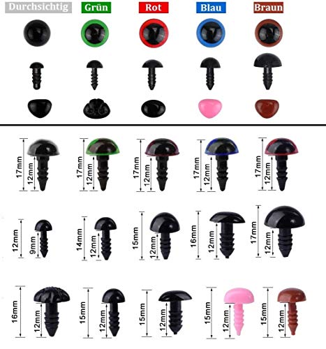 La confezione include: Include 194 occhi di sicurezza, 5 cordoncino,306 nasi di sicurezza e 280 rondelle di varie dimensioni e una scatola di plastica con 15 scomparti per un facile trasporto e conservazione.