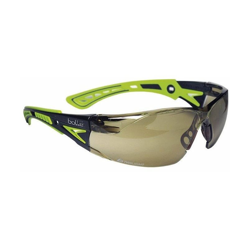 Occhiale ergonomico, stanghette bimateriali, lente platinum con grande resistenza antigraffio e antiappannamento.