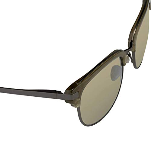 Modello: Khaki Matte Grey D-Frame con lenti a specchio dorate.