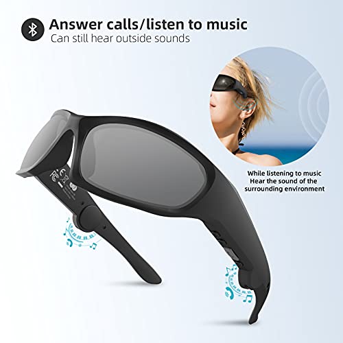 TJ Occhiali audio intelligenti di sicurezza con cuffie aperte, occhiali da sole sportivi bluetooth, occhiali da ciclismo per uomini e donne, ascolto di musica e chiamate - nero