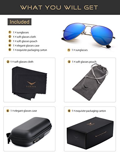 Uomo occhiali da sole Aviatore Polarizzate di guida con il caso - Protezione UV 400 bluTelaio argento Lenti 60 mm