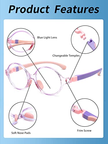 JM Occhiali a Luce Blu per Bambini, Giochi per Computer per Ragazze e Ragazzi dai 3 ai 10 Anni, Occhiali Anti Raggi Blu TR90 Rosa