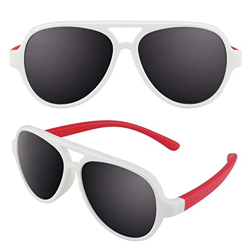 CGID Occhiali da Sole per Bambini Gommati Flessibili Pilot Lenti Polarizzate per Bimbi e Bambini 3-6 Anni,K93, Bianco Rosso