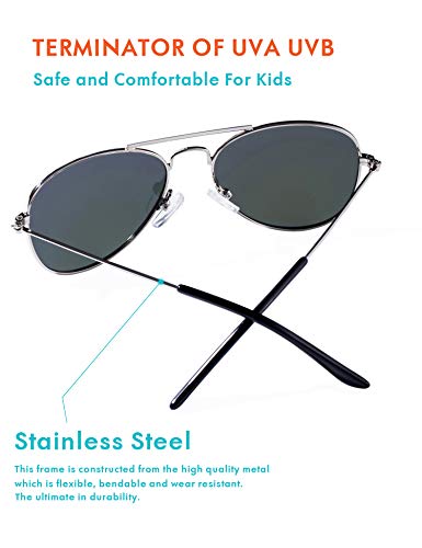PILOT RETRO CLASSICS - I nostri occhiali da sole polarizzati per bambini sono dotati di lenti importate in acciaio inossidabile e policarbonato di qualità tedesca che sono state approvate dall'American National Standards Institute per creare una montatura resistente e solida, sottile e scorrevole e una lente pilota difficile da rompere nel Pilot Classic -Stile da offrire Questa collezione di occhiali da sole per bambini durerà più a lungo e ridurrà il rischio di lesioni al tuo bambino.