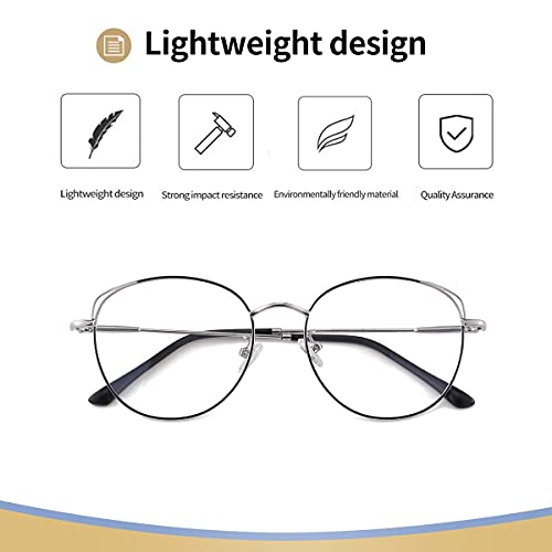 Occhiali Anti Luce Blu, Cat Eye Occhiali Bloccanti Luce Blu, Occhiali Luce Blu Anti Eyestrain Montatura in Metallo Per UV PC Gaming Computer Donna Nero Argento Telaio