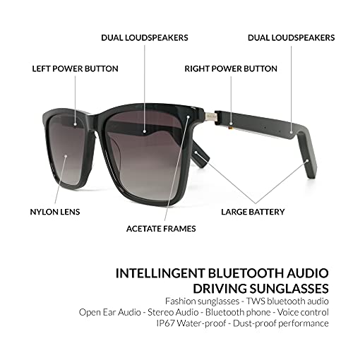 Occhiali bluetooth con speaker stereo e il microfono integrati | Occhiali da sole AUDIO Wireless, IP7 Impermeabili, Pairing automatico | Design UNISEX | Compatibilità universale | SUONO cristallino