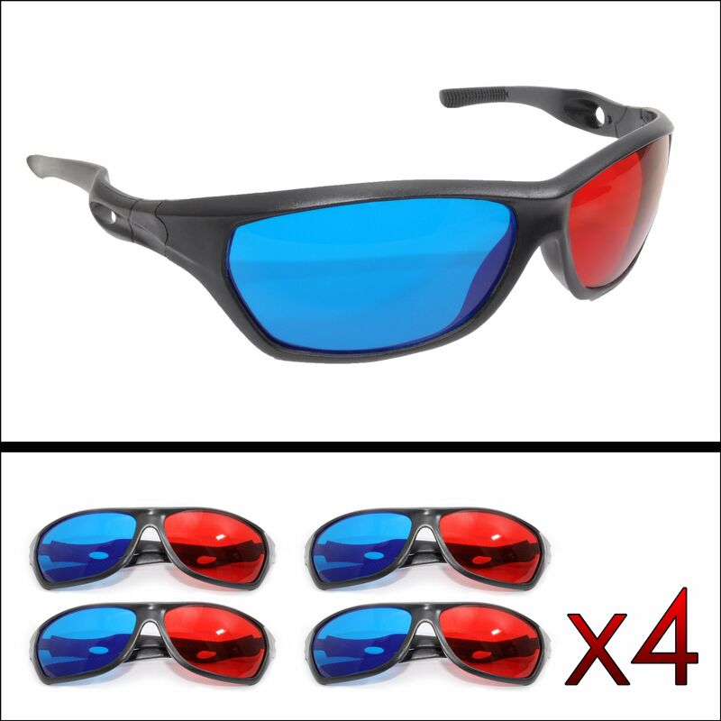 Occhiali 3D in stile sportivo adatti per televisione, videogiochi o immagini 3D Montatura in plastica nera con aste pieghevoli Una lente rossa e una lente blu ciano Misure: 14cm (larghezza) e 12cm (lunghezza braccio) Estremamente leggero (24g) per il massimo comfort