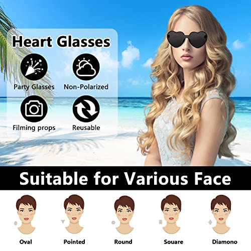 【Design Elegante】: Occhiali da Sole Senza Montatura di cuore combinano elementi classici e alla moda per creare un look unico, alla moda e innovativo per una sensazione giovanile e unica e adatti a tutte le forme del viso. Classica forma a cuore aggiungeranno alcuni elementi carini e dinamici alla tua festa o ai tuoi abiti in costume.