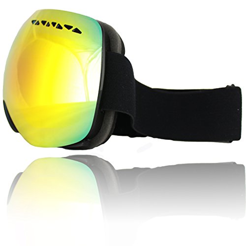 Occhiali Nero Oro, Goggle, Specchio, senza cornice, occhiali da neve, occhiali da neve, completamente a specchio, senza cornice, oro, nero, casco