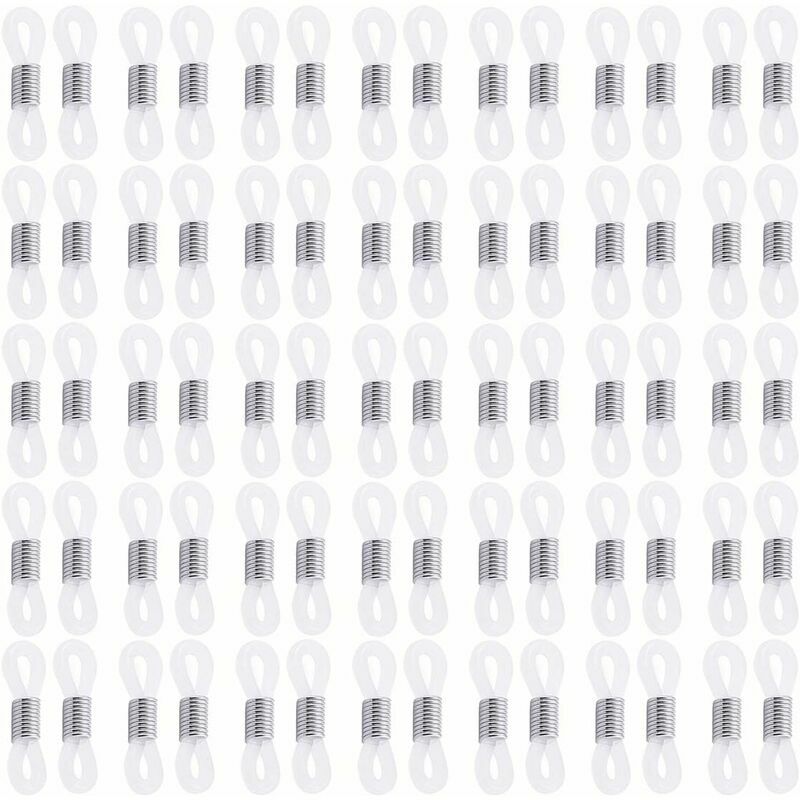 Materiale - Le fibbie per cinturini per occhiali da 50 pezzi sono realizzate in gomma siliconica con una buona elasticità. L'anello di metallo è di circa 10 bobine, renderà la catena stabile sugli occhiali e avrà un effetto antiscivolo 【Dimensioni】 La catena degli occhiali termina circa 20 x 5 mm (L*W). lo spessore è di 2 mm, adatto per la maggior parte degli occhiali e delle catene 【Regolabile】 L'estremità regolabile del cinturino in argento consente di afferrare bene gli occhiali. Basta spostare l'anello di metallo per regolare la tenuta delle aste degli occhiali 【Facile da usare】 Spostare il cerchio in acciaio inossidabile che scorre verso l'alto significa bloccare e scorrere verso il basso significa sbloccare, può connettersi con qualsiasi catena di gioielli 【Ampiamente usato】 Il portaocchiali termina non solo per catenine per occhiali, collane, ma può essere utilizzato anche come elastico, è possibile rimuovere le estremità in gel di silice per usarlo come elegante elastico