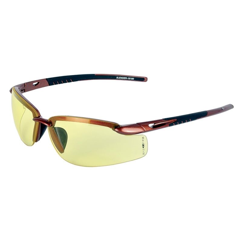 dotati di terminali e nasello in materiale morbido e confortevole anche in caso di utilizzo prolungato, gli occhiali protettivi Cofra Slender sono perfetti per svolgere lavorazioni in presenza di cattive condizioni atmosferiche ed ambienti nebbiosi, ispezione di superfici, lavorazioni all'interno di gallerie, lavori nel sottosuolo, miniere, lavori meccanici, esposizione a luce ultravioletta, magazzini. Dati Tecnici Peso 25 g Lente Gialla Trattamento indurente antigraffio Trattamento antiappannamento Protezione UV 400 Normative EN 166 - Normativa generale EN 170 - Filtri ultravioletti