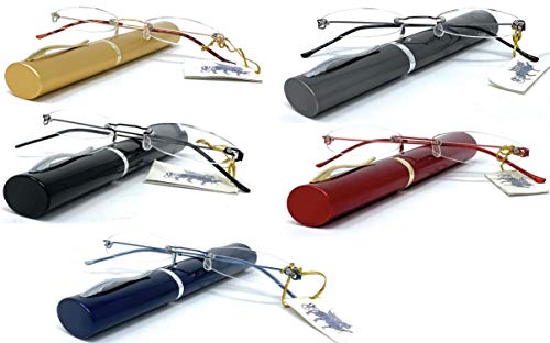 Pack da 5 occhiali da lettura con custodia in alluminio "Oval Penbox" Uomo, Donna Visione confortevole... (Rosso, nero, blu, oro, grigio, 1,00)