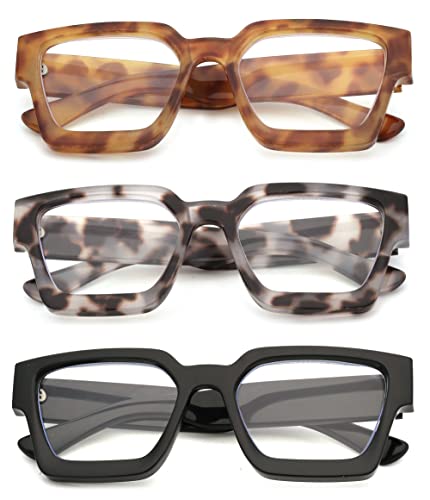 JM 3 Pack Occhiali da Lettura Quadrati, Lettore di Computer con Blocco Della Luce Blu per Donna Uomo +2.0
