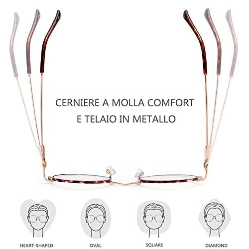 Occhiali da lettura anti blu vintage eleganti per donna uomo con cerniera a molla, anti affaticamento degli occhi, previene il mal di testa TT6800(Oro,+100)