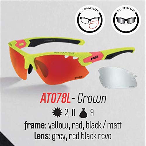 R&R R2 - Occhiali da sole multiuso Crown | occhiali da ciclismo | occhiali da sole | occhiali da ciclismo | occhiali da cross per uomo e donna (giallo neon, lenti intercambiabili)