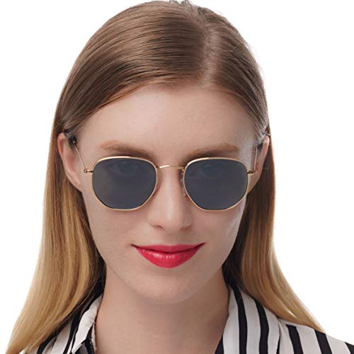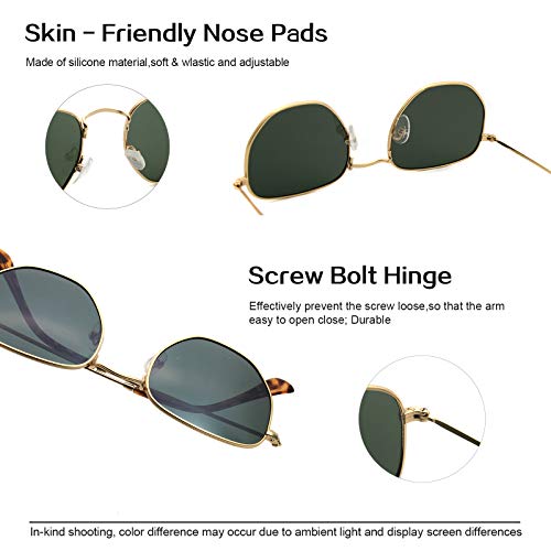 Design elegante: design esagonale leggero in metallo con motivo intagliato sul ponte e sul lato del bordo, porta elemento vintage agli occhiali da sole alla moda, asta elastica con forte flex, nasello confortevole regolabile (Retro e cristallo a scelta) con garanzia del marchio di alta qualità, è il aspetto unico, mantenere distinto decorare sul tuo viso.