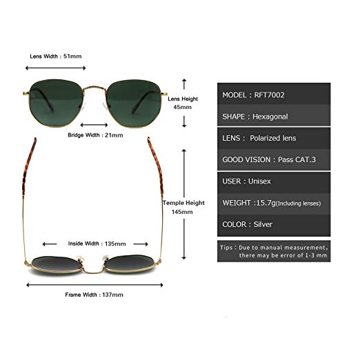 RICH MODE Occhiali da sole polarizzati quadrati piccoli per uomo e donna con lenti a specchio poligonali - montatura dorata con lente argento/verde a specchio (naselli in cristallo)