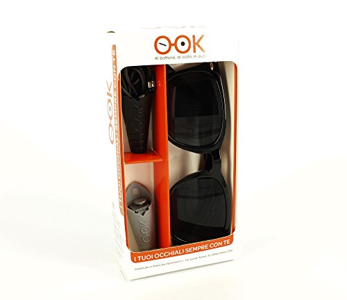 O-OK Kit occhiali da sole 2 portaocchiali inclusi,kit sunglasses occhiali da sole con lenti oscurate filtro cat. 3, SUNGLASSES ONIX unisex con 2 portaocchiali in silicone utilizzabili anche in auto (Nero)