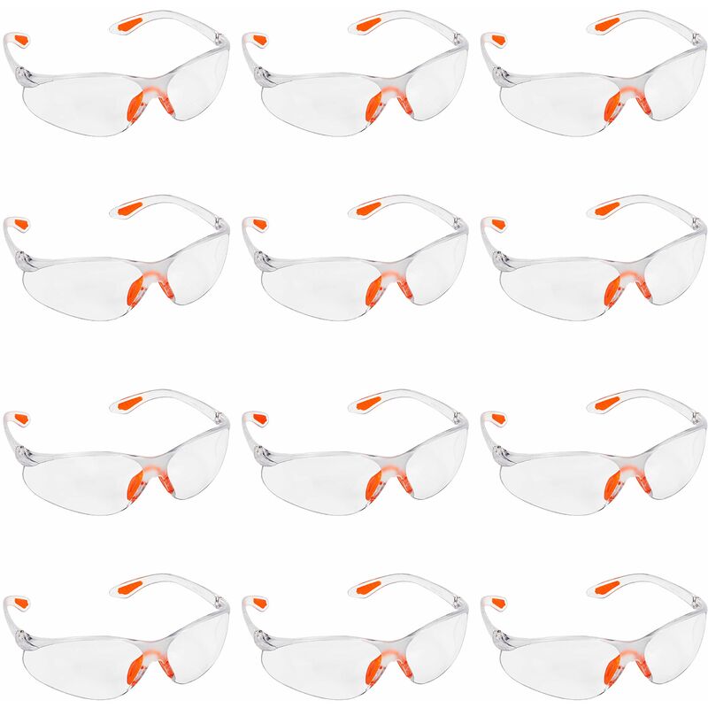 12 OCCHIALI DI SICUREZZA: questi occhiali di sicurezza sono stati testati e sono conformi allo standard. Sono resistenti ai raggi ultravioletti, alla corrosione e alle fiamme. Poiché questi occhiali avvolgono il viso, si adattano a donne, uomini e bambini senza il rischio di scivolare. Vedere l'immagine per le dimensioni. OCCHIALI DI SICUREZZA STABILI: questi occhiali da lavoro hanno un rivestimento antiscivolo arancione sul ponte nasale e sulle estremità delle aste. Questi suggerimenti assicurano che queste protezioni per gli occhi rimangano in posizione anche quando sei curvo su un progetto. Eviteranno che polvere e detriti entrino in contatto con i tuoi occhi. LENTI TRASPARENTI ANTIGRAFFIO: le lenti sono resistenti ai graffi, il che significa che non si deterioreranno facilmente e proteggeranno i tuoi occhi a lungo . Ogni paio di occhiali da costruzione offre protezione contro particelle ad alta velocità e bassa energia e protezioni laterali per mantenere gli occhi ben protetti.