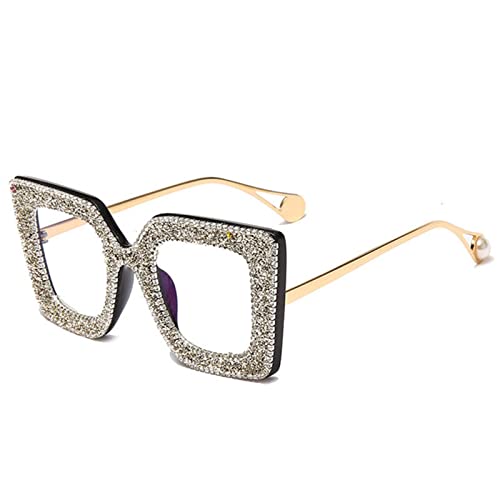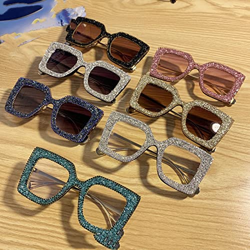 XKUN Occhiali da Sole Occhiali da Sole Quadrati Strass Donne Cornice di Cristallo Donne da Donna Quadrato con Diamanti-Red