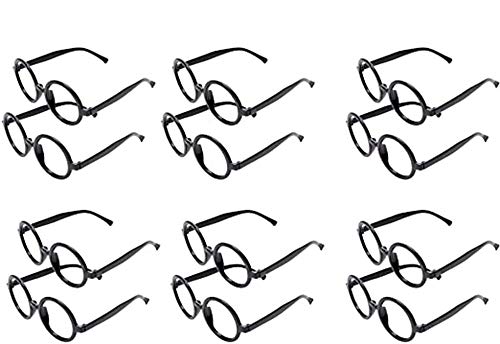 12 occhiali da mago rotondi in plastica, per una festa a tema Harry Potter (nero)
