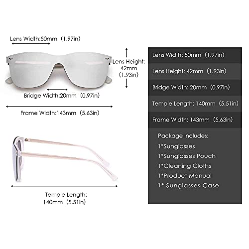 JIM HALO Occhiali da Sole Senza Montatura Specchio Un Pezzo Uomo Donna (Trasparente/Sspecchio Argento)