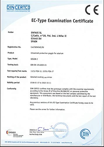 Sicurezza certificata per dispositivi di protezione personale conforme alla normativa DIN EN 166:2002-04 e DIN EN 170:2003-01.