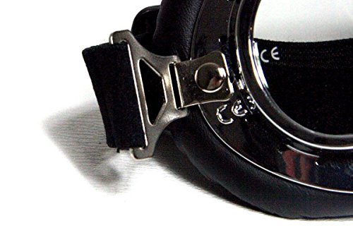 Motorcycle goggles black, mirrored lenses, chrome frame, Faux leather