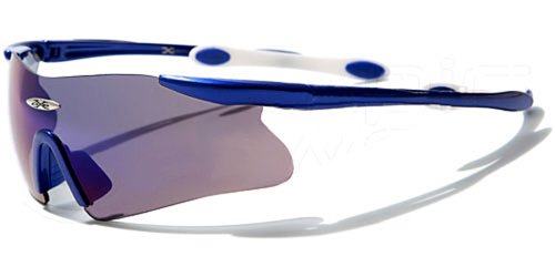 Occhiali da Sole X-Loop - Sport - Ciclismo - Sci - Driving - Moto - Arrampicata / Mod. 3555 Blu e Bianco Semi Specchio / Un formato adulto / 100% Protezione UV-400