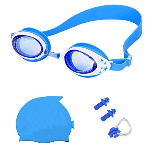 YFOX Occhialini da Nuoto per Bambini +Cuffia da Nuoto+Tappi per Le Orecchie+Clip per Naso Sono Un Set di strutture per Bambini eccellenti e convenienti,Resistenti all'Usura e comode da Indossare