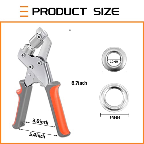 Occhiellatrice Manuale,Occhiellatrice per Teloni,Occhiellatrice per Carta Kit con 500 pezzi (ø Interno 10mm) Occhielli Metallo,per Pelle,Telone,Cartone,Pvc,Tende da Sole,Tessuto etc