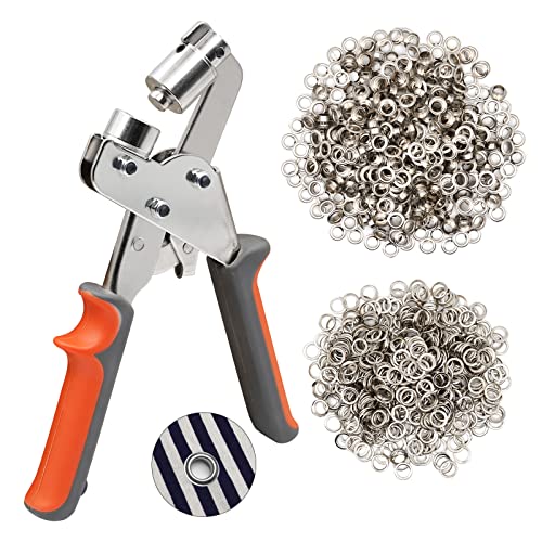 Occhiellatrice, Occhiellatrice Per Teloni Occhiellatrice Manuale Multifunzione,con 500 Pezzi Passacavo In Argento da 3/8 Pollici (10 Mm) per Telone, Cinture, Poster