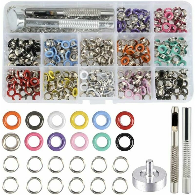 Materiale in rame puro: il kit di occhielli per cucire è realizzato in ottone. La superficie è liscia, resistente, resistente alla corrosione e alla ruggine, elevata resistenza ed eccellente resistenza alla deformazione. Diametro interno: 5 mm, diametro esterno: 9 mm. Kit completo: occhiello in metallo contiene 360 set di 10 colori di fori, dotato di 3 strumenti per asole, tra cui base, perforatore e strumenti di installazione, con una scatola di immagazzinaggio, che lo rende facile. per trovare i componenti corrispondenti., Facile da installare: semplifica l'installazione degli occhielli con la taglierina e il mandrino abbinato. I fori installati in modo errato sono facili da rimuovere. L'apriforo può tagliare facilmente la maggior parte dei tessuti. Il mandrino ha un motivo distintivo sulla superficie, l'antiscivolo offre una presa più sicura.,12 colori: il kit passacavo da 5 mm ha 12 colori: viola, rosa, nero, azzurro, argento, grigio, blu, rosso chiaro, giallo, bianco., nero