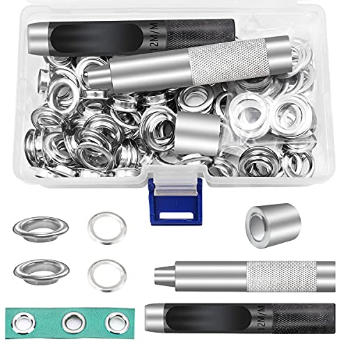 Occhielli Set di occhielli per teloni 100 Pezzi Occhiellatrice per Teloni 12mm con Scatola Portaoggetti, Adatto per Teli in Pelle e altri Tessuto