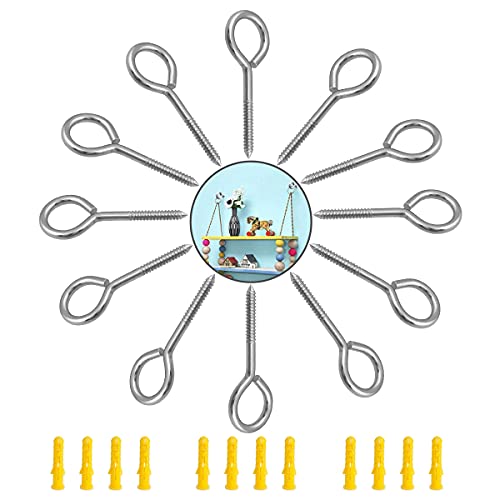 Viti a Occhiello,Ganci a Vite 12 pezzi Viti a Occhiello Gancio a Vite con Occhiello Fai da Te e Pendenti - Vite ad Anello Occhielli a Vite con Autofilettante Vite Accessori M4 * 50mm