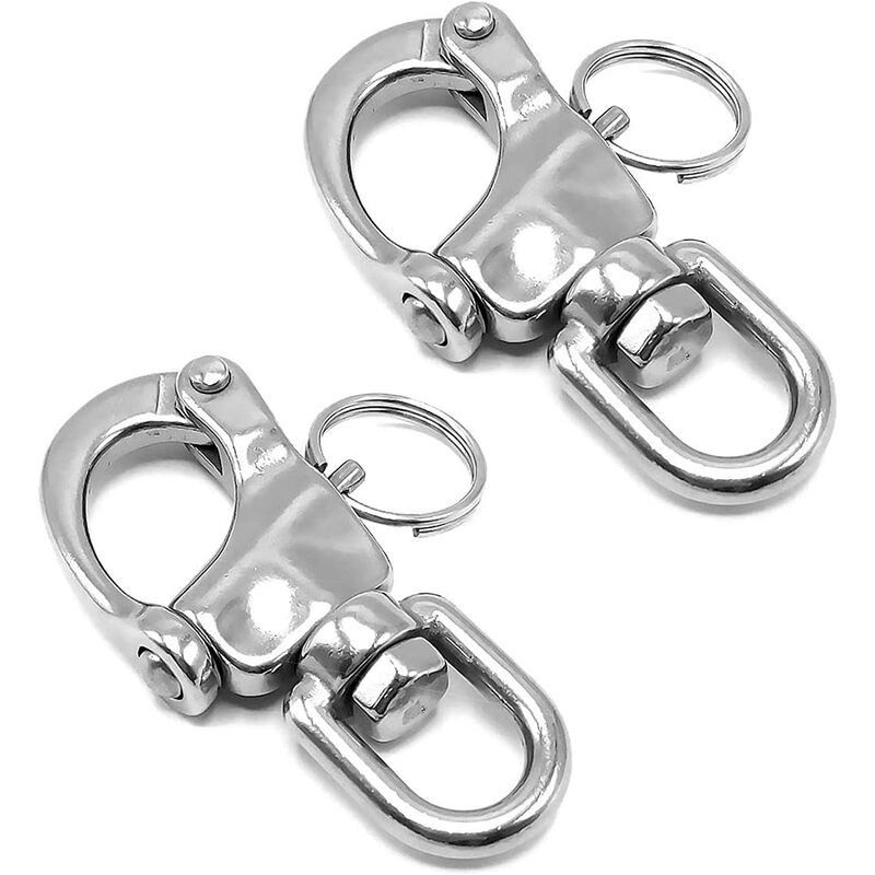 Confezione da 2 moschettoni girevoli per Yoke Rig. Grilli a sgancio rapido per Yoke Rig per barca a vela. Specifiche del modello: (2-3/4), WLL: 800 libbre, il carico di lavoro sicuro dipende dall'applicazione. Girevole il grillo consente il collegamento con parti in movimento dinamico, come le drizze dello spinnaker. Realizzato in acciaio inossidabile 316 di grado marino, costruzione solida per impieghi gravosi, massima resistenza alla corrosione e durata nell'ambiente di acqua salata. Confezione da 2 moschettoni girevoli per sartiame Bail. Specifiche: WLL: 800 libbre Tipo di cauzione: Swivel Eye Lunghezza grillo: 2-3/4 Materiale: acciaio inossidabile 316 Contenuto della confezione 2x Grillo Confezione da 2 moschettoni girevoli per bail rig. Realizzati in acciaio inossidabile marino 316, costruzione robusta robusto, massima resistenza alla corrosione e durata in ambienti con acqua salata. Specifiche del modello Lunghezza grillo: (2-3/4), WLL: 800 libbre, il carico di lavoro sicuro
