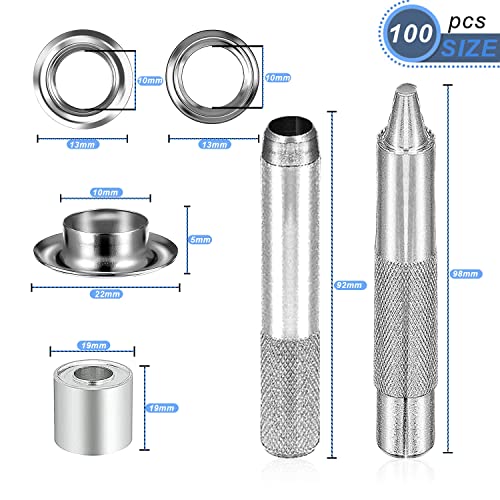 Occhiello Strumento Kit,100pcs Grommet Kit,Kit Occhielli per Teloni Borse Scarpe Abbigliamento,Occhielli in Metallo con Scatola di Stoccaggio(10mm)