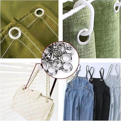 2.【Kit Ideale】: Il occhiello strumento kit include occhielli in metallo, maniche, punteruoli, strumenti di installazione e scatole di immagazzinaggio (diametro interno del foro 6 mm).