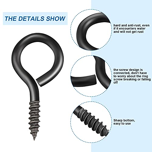180 Viti ad Occhio Ganci per Occhi Bulloni a Occhiello Vite Placcata nell'Occhio Viti Autobloccanti in Acciaio Inossidabile Ganci a Occhiello per Impieghi Gravosi, 26 mm, Nero, 14#