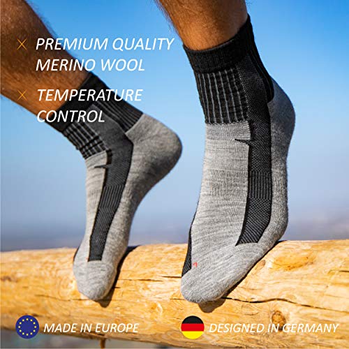 Occulto CALZE TREKKING in LANA MERINO da UOMO e DONNA (1-3 PAIA), CALZINI TREKKING traspirante e anti-sudore 43-46 3 Paia | Nero-Grigio-Bordo
