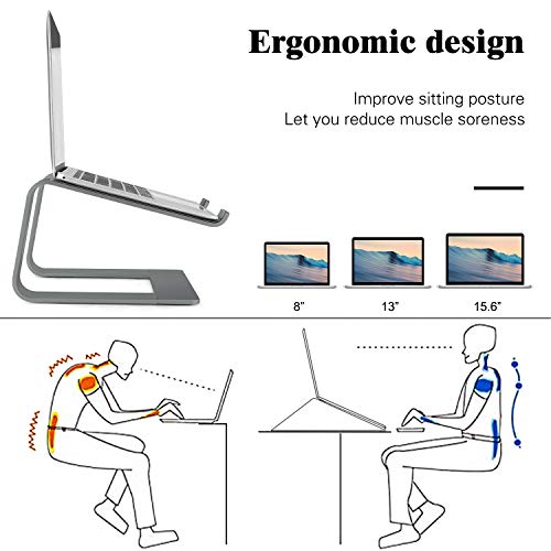 : Conforme al principio dell'ergonomia. Il supporto per computer solleva il laptop all'altezza di visualizzazione perfetta e corregge la posizione seduta dell'utente davanti allo schermo. Raddrizza la parte superiore del corpo per ridurre il dolore al collo e alle spalle. Inoltre, il bordo del supporto è così liscio che è protetto da graffi.