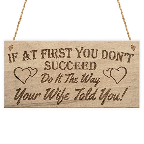 Red Ocean iF at first you don' t Succeed do it The Way your Wife Told you Funny marito, da appendere, a Anniversary Gift Sign