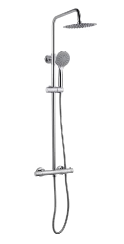 OCEAN ITALY Set Doccia con Soffione e Doccetta Rotondi in Acciaio INOX, Colonna Doccia Termostatica, Kit Saliscendi Doccia Regolabile in Altezza, Sistema con Miscelatore Termostatico