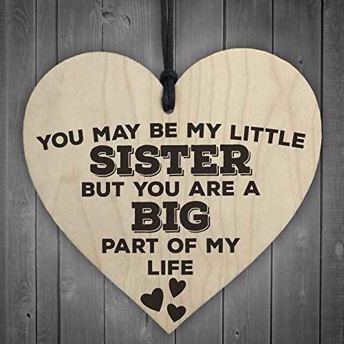 Red Ocean, placca in legno a forma di cuore da appendere, con scritta in lingua inglese "You may be my little sister, but you are a big part of my life”
