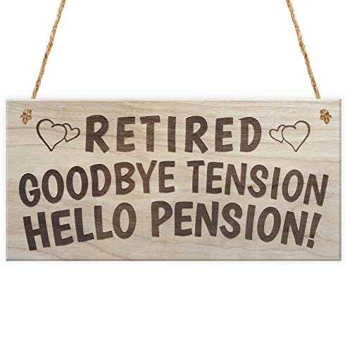 Red Ocean RO-2764 Targa in Legno Retired Goodbye Tension Hello Pension, con Scritta in Lingua Inglese Funny Rhyme, Regalo, Duro, 20x1x10 cm
