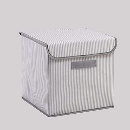 Ocean Home Textile Set di 2 scatole portaoggetti a righe grigie con coperchio, pieghevoli, 30 x 30 x 30 cm